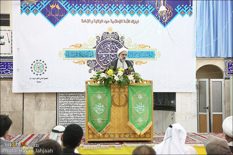 مراسم جشنی به مناسبت عید سعید غدیر خم توسط مجمع اهل بیت(ع) سوریه در مصلای حرم حضرت زینب(س) در شهر دمشق برگزار شد. در این مراسم حجت الاسلام و المسلمین «صفارهرندی» نماینده مقام معظم رهبری در سوریه و حجت الاسلام و المسلمین «محسن نخعی مقدم» مدیر مجمع اهل بیت(س) در سوریه، سخنرانی انجام دادند و مداح اهل بیت(ع) «حسن ابوغنیم» به مدح ائمه معصومین(ع) پرداخت.