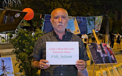 به گزارش پایگاه رسمی مجمع جهانی اهل بیت (ع)- پویش رسانه‌ای «به عشق علی» (#Ali_Askina)، به همت خبرگزاری ابنا در شهر اغدیر ترکیه برگزار شد. در این پویش علاقمندان به امیرالمومنین علیه‌السلام، علاوه بر انتشار محتوای غدیری در شبکه‌های اجتماعی، با تبریک عید غدیر و با در دست داشتن نوشته «به عشق علی»، عکس یادگاری ثبت کردند.