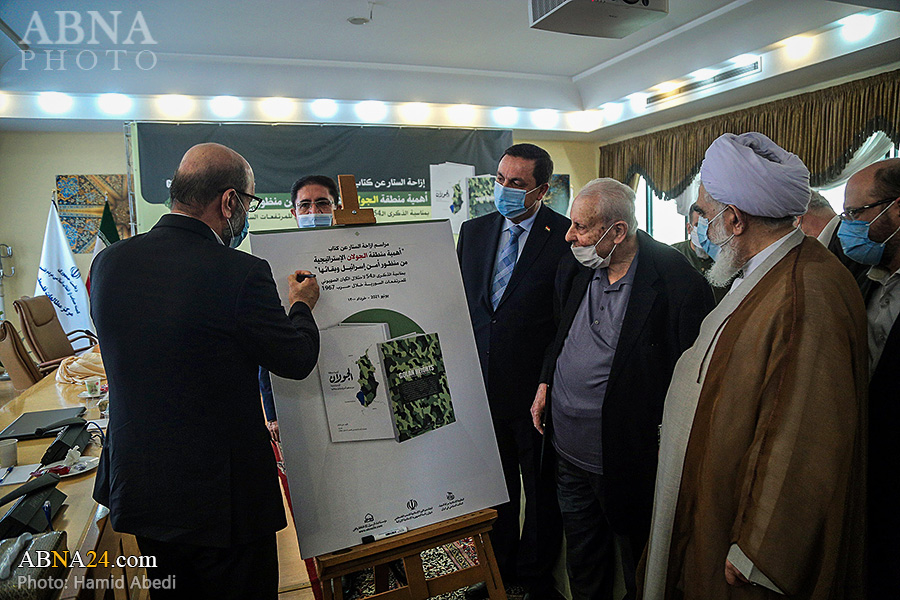 بمناسبة الذكرى الـ 54 لاحتلال الكيان الصهيوني للمترفعات السورية خلال حرب 1967، تمت إزاحة الستار عن "كتاب أهمية منطقة الجولان الاستراتيجية من منظور أمن إسرئيل وبقائها" ذلك بحضور شخصيات سياسية وثقافية، وأقيمت المراسم لهذه المناسبة صباح يوم الاربعاء، في مبنى "كوثر" لارئاسة الجمهورية الايرانية، وألقى آية الله الشيخ "محمد حسن اختري" رئيس المجلس الأعلى للمجمع العالمي لأهل البيت (ع)، ومدير لجنة دعم الثورة الإسلامية للشعب الفلسطيني، واللواء "حسين دهقان" مستشار القائد العام للقوات المسلحة في الصناعات الدفاعية، والسيد "صلاح الزواوی" سفير دولة فلسطين في جمهورية ايران الاسلامية، والسفير السوري الدكتور "شفيق ديوب" في ايران كلمة بهذه المناسبة، كما قدّم كل من حجة الاسلام والمسلمين السيد "حسيني عارف" مدير العام لمؤسسة "ابناء الرسول (ص) الاعلامية، والسيد "علي شاكر" مؤلف تقريرا موجزا عن الكتاب، كما كان حاضرا شخصيات سياسية بارزة ونشطاء ثقافيين .