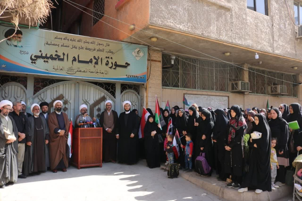 وفقا لما أفاده الموقع الرسمي للمجمع العالمي لأهل البيت (ع) - برعاية مجمع أهل البيت (عليهم السلام) وممثلية جماعة المصطفى العالمية (ع) في سوريا، وبحضور طلاب وأساتذة الحوزات الزينبية، أقيمت وقفة تضامنية في - دعم شعب فلسطين المظلوم وإدانة الجرائم المروعة التي يرتكبها النظام الصهيوني.