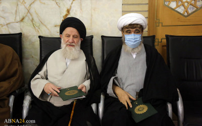 The ceremony was held with the presence of dignitaries Ayatollahs, Hojat al-Islams, Messrs. such as Karimi Jahromi and Masoudi Alavi, professors of high levels of Qom seminary, Mohammad Hassan Akhtari and Hadavi Tehrani, President and member of the Supreme Council of the AhlulBayt (a.s.) World Assembly, Sayed Hashem Hosseini Bushehri, head of the Society of Seminary Teachers of Qom, Sayed Ahmad Khatami and Abbas Kaabi, members of the Assembly of Leadership Experts, Sayed Mohammad Saeedi, custodian of the holy Shrien of Lady Fatimah Masoumeh (a.s.), Mohammad Haj Abulqasem, on behalf of the President of the Islamic Republic of Iran, Sayed Mohammad Taghi Shahcheraghi, Governor of Qom, Masjed Jame’i, the former ambassador of the Islamic Republic of Iran in the Vatican, Al-Baghshi, President of the University of Hijazis, Abdullah al-Daqaq, director of the seminary of Bahrainis in Qom, Sayed Munzer Hakim, head of Al-Zurriah Al-Nabawieh Research Institute, Ashrafi Darvishi, Vice President of Ashura International Foundation, a group of directors of the AhlulBayt (a.s.) World Assembly and Islamic Propagation Office of Qom Seminary, a number of non-Iranian students and different strata of martyr-nurturing people of Qom.